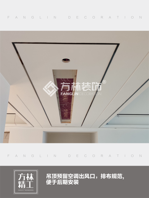 武汉方林工地——吊顶预留空调出风口,阳角线成90度,造型美观线条流畅